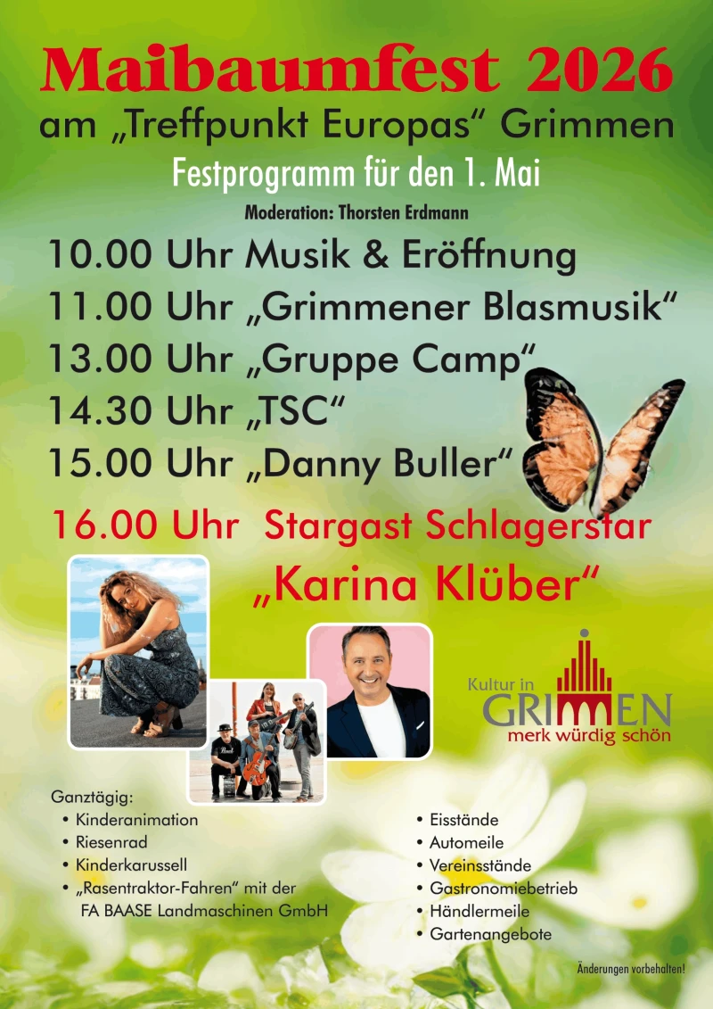 Für gute Laune sorgen die „Grimmener Blasmusik“, der „Tanzsportclub Grimmen“, Danny Buller, Karina Klüber sowie die Musiker von „Camp“.