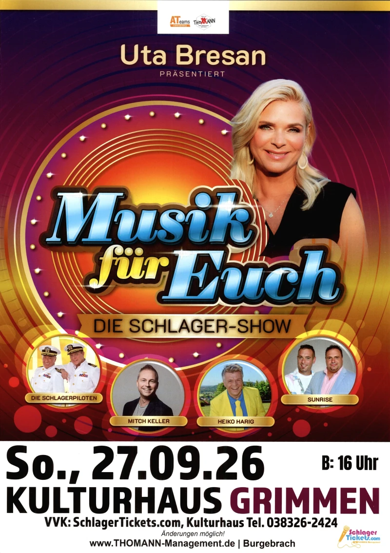 Ein Abend voller Emotionen, Hits, Lachen und vielen Überraschungen! Seid dabei, wenn Uta Bresan und ihre Gäste zeigen, dass Musik mehr kann als unterhalten – sie verbindet!